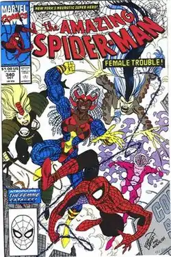 The Femme Fatales are a fictional group of female characters appearing in American comic books published by Marvel Comics. They are often depicted as antagonists to the superhero character Spider-Man and Captain America.