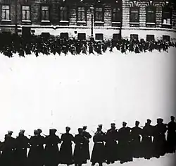 ![]() Crowd of petitioners, led by Father Gapon, near Narva Gate, St. Petersburg | |||