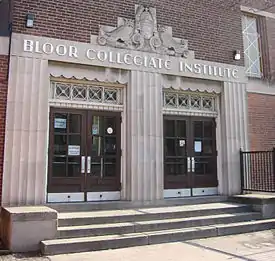Bloor Collegiate Institute (Bloor CI, BCI , or Bloor, originally Davenport High School and Bloor High School[2]) is a public secondary school in Toronto, Ontario, Canada. It is located at the intersection of Bloor Street and Dufferin Street, in the Dufferin Grove neighbourhood. The school was originally part of the Toronto Board of Education that was merged into the Toronto District School Board. Attached to the school is Alpha II Alternative School.