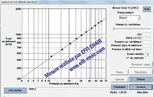 In order to translate the airflow values derived using and from the blower door manufacturer to the actual volumetric airflow through the fan, use the following:[20]