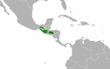 The blue-and-white mockingbird is a year round resident of Mexico from south of the Isthmus of Tehuantepec through Guatemala to El Salvador and southern Honduras. It inhabits a variety of landscapes including the edges of humid evergreen forest, pine-oak forest, second growth, and humid and semi-arid scrublands. In elevation it ranges between 900 and 3,000 m (3,000 and 9,800 ft).[3]