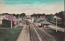 Service on the Fairmount Line (as the Dorchester Branch of the Norfolk County Railroad and later the New York and New England Railroad and New York, New Haven and Hartford Railroad) began in 1855 and lasted until 1944. A station called Mattapan was located at Blue Hill Avenue.[3] A station building was located on the inbound side, with a shelter on the outbound side. (This station was separate from the Dorchester and Milton Branch Railroad's Mattapan station, which still stands in Mattapan Square next to the streetcar station that replaced it.)