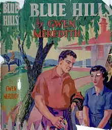 In preparing the radio serial Blue Hills for publication I have not been set such a formidable task as faced me with The Lawsons, since up to the present date Blue Hills has been presented by the Australian Broadcasting Commission for little more than a year. This means a mere half million words to contend with! But since the publisher sets a defensive maximum of eighty thousand words, intending readers should be warned—and perhaps heartened by the warning—that in that editing, a great deal has perforce been discarded. However, I think the main elements and characters have survived the massacre and the book brings the story to the point reached on air at the time of writing. GWEN MEREDITH. (Author's note, Blue Hills (1950))
