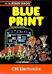 Blue Print is an arcade maze game released in September 1982.[3] It was developed by the Stamper brothers (of Zilec Electronics at the time) and licensed to Bally Midway. Ports of Blue Print were published by CBS Electronics for the Atari 2600, Atari 5200, and Commodore 64 in 1983.