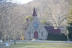 The original 148 acre (0.6 km²) campus, located 20 miles (32 km) from Charlottesville, Virginia, sits at the foothills of the Blue Ridge Mountains. The campus has grown to nearly 750 acres (3.2 km²) and includes a lake and several ponds. The Robert A. Gibson Memorial Chapel, the Martha Bagby Battle House (former Headmaster’s Residence), and the old St. George Post Office still stand on the school's grounds. The Gibson Memorial Chapel, designed by architect Ralph Adams Cram and built in 1929–1932, and the Martha Bagby Battle House were listed on the National Register of Historic Places in 1993.[2]