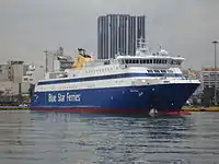 Blue Star Ferries was founded in 1965 as Strintzis Lines by the Strintzis family from Lixouri, Kefalonia. The company was rebranded as Blue Ferries in 2000 following Attica Enterprises' acquisition of a 48% stake in the company.[3] Blue Star Ferries is a sister company of Superfast Ferries, as both are part of the Attica Group and have had partnership in some routes, such as Rosyth to Zeebrugge and presently Piraeus-Heraklion.