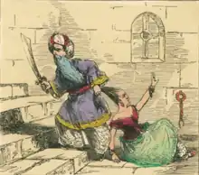 The color blue owned aristocratic associations in Europe during the second millennium, and this linkage with blue blood was reflected in Charles Perrault's story of Bluebeard.[35] In Maria Tatar's view, the color of his beard suggests otherworldly origins.[36]