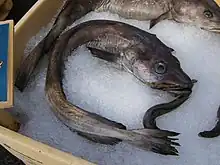 The blue ling (Molva dypterygia) is a member of the cod family from the North Atlantic. It is usually 70 to 110 cm long, but the maximum length is 155 cm. Blue ling feed on fish (flatfishes, gobies, rocklings) and crustaceans and benthic invertebrates. The fish reaches sexual maturity at the age of six to 12 years.