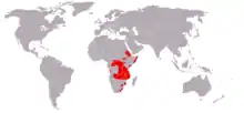 | Range map (note: includes the range of the closely related Sykes', silver, and golden monkey) | |