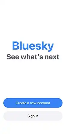 ![]() Bluesky Social iOS app landing screen | |