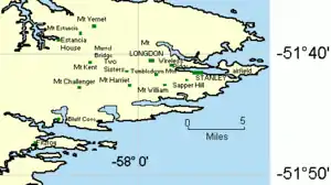 Bluff Cove (Spanish: Bahia Agradable or Hoya Fitzroy)[1] is a sea inlet and settlement on East Falkland, in the Falkland Islands, on its east coast. It was the site of secondary landings of the Falklands War of 1982, which resulted in a successful attack of the Argentine Air Force, which came to be known as the Bluff Cove Disaster.