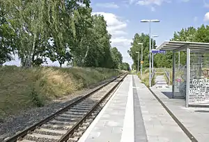 Blumberg-Rehhahn station is a railway station in the Rehhahn district of the municipality of Ahrensfelde, located in the Barnim district in Brandenburg, Germany. It is served by the Regionalbahn service RB 25 of the Niederbarnimer Eisenbahn.