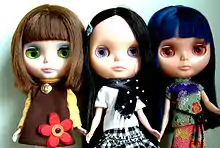 Blythe is a fashion doll, about 28 cm (11 inch) tall, with an oversized head and large eyes that change color with the pull of a string. It was created in 1972 and was initially only sold for one year in the United States by toy company Kenner (later purchased by Hasbro). In 2001, the Japanese toy company Takara[lower-alpha 1] began producing new editions of Blythe dolls. There is a network of hobbyists who customize the doll for resale and create clothing and shoes for Blythe. Enthusiasts share photographs of their work and other types of dolls on the Internet.[1]