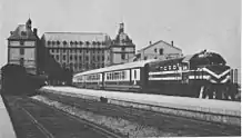 The Boğaziçi Express made its inaugural run from Haydarpaşa Terminal in Istanbul to Ankara station in Ankara on 1 June 1968 with brand new railcars from CIWL as one of the State Railways' premier trains. The cost of a single ticket was 32 liras ($3.55 at the time), while a round-trip ticket cost 56 liras ($6.22).[2] Motive power for the train was diesel for the entire route, even after 131 km (81 mi) of track from Istanbul to Arifiye was electrified in 1977. The train was the victim of several accidents during its lifetime, most notably on 4 January 1979 near Esenkent when the train collided with the Anatolian Express, killing 19 and injuring 124 people.[3] When TCDD electrified the entire Istanbul-Ankara railway in December 1993, the Boğaziçi Express was given electric motive power. The first electrified train, pulled by E40002, departed Haydarpaşa at 08:00 on 26 December 1993. TCDD also equipped its new TVS2000 railcars, that had been built in order to improve the railway's image. The limited express service of the train changed a few years later and became one of the local intercity trains operating between Istanbul and Ankara, stopping at most stations. On 25 August 2004, TCDD discontinued the train citing low ridership, however after a public backlash occurred the train was revived and began operations on 27 September.[4] Once the Ankara-Eskişehir high-speed railway was opened in March 2009, several trains operating between Istanbul and Ankara were cut back to Eskişehir. The Boğaziçi Express however, continued its full journey between the two cities until 1 February 2012, when it was shorted by 131 km (81 mi) from Istanbul to Arifiye, due to construction works between Gebze and Sapanca for high-speed train service. Two months later, on 2 April, the train was shortened again, this time from Ankara to Eskişehir, due construction for Ankara's Başkentray commuter rail service. The Boğaziçi Express ran between Arifiye and Eskişehir (282 km (175 mi)) for two more years until it was discontinued on 24 July 2014 with the opening of the Istanbul-Eskişehir extension of the Istanbul-Ankara high-speed railway.