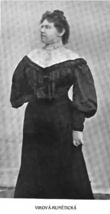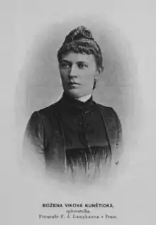 Božena Viková-Kunětická (30 July 1862 – 18 March 1934) was a Czech nationalist politician, writer, and feminist. Born in Pardubice, in the Kingdom of Bohemia (part of the present-day Czech Republic) she was the first female member of the Bohemian diet. She spent her last 12 years in Libočany where she died in 1934. A novelist,[1] her work is stored at the Literary Archive of the Museum of Czech Literature.