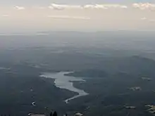 Boadella reservoir (Catalan: Pantà de Boadella) is a reservoir located on the Muga river, near Darnius, Catalonia, Spain. The dam is located at Darnius while the main water body is also within the boundaries of Sant Llorenç de la Muga, Terrades and Maçanet de Cabrenys. Despite giving it its name to the reservoir, the municipality of Boadella i les Escaules is not located within its boundaries. The construction of the hydroelectric dam was completed in 1969 and was designed by chief engineer Eugenio Pinedo, creating a reservoir with a storage capacity of 60.2 hm³. The dam has a structural height of 63 m and a crest length of 250 m.[1][2]