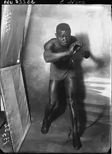 Bob Scanlon (7 February 1886 – date of death unknown) was an American boxer who partook in over 125 bouts and spent three years fighting in the French Army during the First World War. He was born in Mobile, Alabama, as Benjamin Lewis and changed his name to Bob Scanlon at an unknown date.[2] He found success as a boxer in Europe, with most of his fights happening in England or France.[3] He lived in Paris for most of his life. He was one of the first Americans to join the French Foreign Legion after the start of the First World War.[4][5]