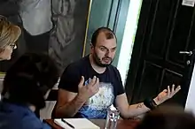 Stojanović was executive director and one of the founders of the Belgrade Pride Parade,[4] which was held for the first time in 2001. He has spoken at various seminars concerning LGBT issues,[5] as well as being a presenter at Tedx Belgrade.[6] Since immigrating to Canada in 2016, he works at Calgary's "Center for Newcomers", helping new arrivals from the LGBT community.[7][8] In 2017, Stojanović spoke at the Prairie and Northwest Territories LGBTQ+ Newcomers Settlement Conference.[9] That same year, he also participated in the "Coming Out Monologues" performance held in Bow Valley.[10]