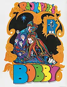 Bobby is a 1973 Indian Hindi-language musical romance film, produced and directed by Raj Kapoor, and written by Khwaja Ahmad Abbas.[2] The film stars Raj Kapoor's son, Rishi Kapoor, in his first leading role, opposite Dimple Kapadia in her debut role. The film became a blockbuster, the top-grossing Indian hit of 1973,[3] the second-top-grossing hit of the 1970s at the Indian box office,[4] and one of the top 20 highest-grossing Indian films of all time (when adjusted for inflation).[5] It also became an overseas blockbuster in the Soviet Union, where it drew an audience of 62.6 million viewers,[6] making it one of the top 20 biggest box office hits of all time in the Soviet Union.[7][8]