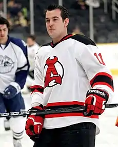 On August 9, 2012, Butler signed a one-year, two-way contract with the New Jersey Devils organization.[7] With the 2012 NHL lockout in effect, he was directly assigned to AHL affiliate, the Albany Devils. Upon commencement of the shortened 2012–13 season, Butler was recalled to New Jersey and made his Devils debut against the New York Islanders at the Nassau Veterans Memorial Coliseum on February 3, 2013. Butler scored his only goal with the Devils against the Pittsburgh Penguins on February 9. After registering 2 points in 14 games with the Devils Butler was placed on waivers by the Devils and claimed by the Nashville Predators on March 4, 2013.[8]