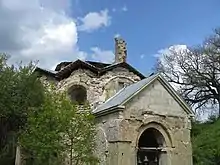 A nearby small church is a hall church design, with the dimensions of 4.7 × 3.7 m, built of cobblestone. It is a late medieval structure, with a semicircular apse and the southern doorway.[1]