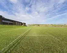 The PE department has a swimming pool. It also has a variety of equipment to cater for sporting activities within two games halls (used for gymnastics, circuit training, social dance, badminton, basketball, football, and indoor games such as Danish Longball) and an outside area consisting of two all-weather pitches for football and hockey, two grass rugby pitches, and spare grass areas used for football. In the PE building upstairs there is a fitness room.[10]