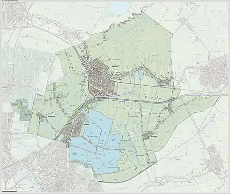 Bodegraven-Reeuwijk (Dutch pronunciation: [ˌboːdəɣraːvə(n) ˈreːuʋɛik]) is a municipality in the western Netherlands, in the province of South Holland with a population of 35,278 in 2021. It was established by a merger of Bodegraven and Reeuwijk on 1 January 2011. The municipality covers 88.64 km2 (34.22 sq mi) of which 13.26 km2 (5.12 sq mi) is water.