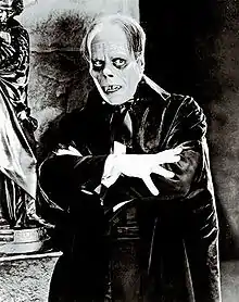 Although not a pioneer when it comes to mutilation, Lon Chaney was the inspiration for many film makers who were. Born on April 1, 1883, in Colorado Springs, Colorado to deaf mute parents, Lon Chaney did not have the easiest childhood (Anderson 1997). However, this did not prevent him from becoming a magician with makeup. Throughout many various films, Chaney perfected his craft. He did his makeup for all the films he was in. Chaney's makeup kit set the standard for later makeup departments in Hollywood.[2] While his most widely known films are The Hunchback of Notre Dame (1923) and The Phantom of the Opera (1925), perhaps some of his most important contributions to modern horror films and their emphasis on the mutilation came from his work in lesser known films. For example, Chaney used collodian to make realistic scars and deformities for his characters Singapore Joe in The Road to Mandalay (1926), Ricardo in Victory (1919), and Tiger Haynes in Where East is East (1929). Chaney died on August 26, 1930, in Los Angeles, California due to complications with throat cancer (Anderson 1997).