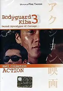 Bodyguard Kiba: Apocalypse of Carnage 2 (修羅の黙示録2 ボディーガード牙, Shura no mokushiroku 2: Bodigaado Kiba), also known as Bodyguard Kiba 3: Second Apocalypse of Carnage,[1] Bodyguard Kiba: Combat Apocalypse 2, or simply Bodyguard Kiba 3, is a 1995 Japanese direct-to-video[2] martial arts/action film directed by Takashi Miike. It is the final part of Miike's Bodyguard Kiba trilogy, following the 1993 film Bodyguard Kiba and the 1994 film Bodyguard Kiba: Apocalypse of Carnage.