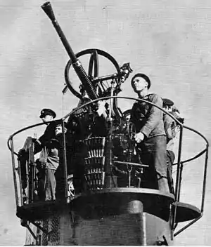 ![]() Bofors 25 mm automatic cannon M/32 on a Swedish submarine. | |