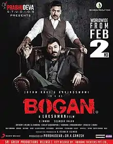 Bogan (transl. Hedonist / Pleasure seeker) is a 2017 Indian Tamil-language action thriller film[2] written and directed by Lakshman and produced by Prabhu Deva (Prabhu Deva Studios) and Ganesh.[3] The film stars Arvind Swamy and Jayam Ravi in titular roles, with Hansika Motwani, Akshara Gowda, Nassar, Ponvannan and Naren in supporting roles. The film story is about the body swapping of a honest police officer, Vikram (Jayam Ravi) and a thief with astral projection power, Aditya (Aravind Swami). Featuring music composed by D. Imman, the film began production during March 2016[4] and released on 2 February 2017 and received generally positive reviews and become a commercial success.
