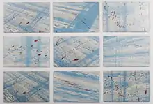 • and some of her geometrically presented photographic series consisted of "Droga" made in 2003 with 9 pictures, Thaw (Odwilż) in 2003 consisting of 25 photos, "Book (Książka)" in 2004 comprising 24 pictures showing the pattern of blood stains on snow contrasting with views of the sky.[1][2]