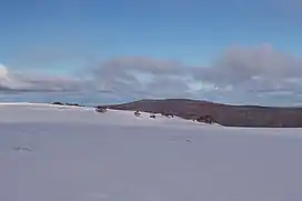 Mount Bogong, the highest mountain in Victoria, is just north of the High Plains. Technically it is not part of the high plains because it is separated from them by the Big River. There are several huts are on the mountain, the earliest of which was built following the death of a skier in 1936.[12] Mount Feathertop is a much more foreboding summit in the west of the Bogong High Plains. It is a popular bushwalking destination due to its proximity to Mount Hotham but can also be approached from Harrietville.[13]