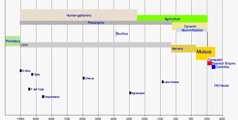 TequendamaAguazuquePiedras del Tunjo Archaeological ParkBD BacatáLake HerreraTibitóEl AbraHistory of ColombiaSpanish EmpireSpanish conquest of the MuiscaMuisca peopleHerrera PeriodBochicaMuisca mummificationAndean preceramicMuisca agricultureHunter-gatherer