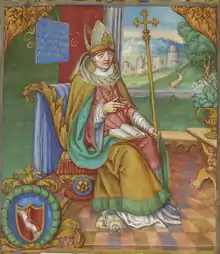 | Attributes | Bishop holding a fish |
