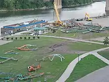 On August 1, 2007, the I-35W Bridge collapsed, killing 13 people and injuring 145.[15] Much of the bridge debris was temporarily stored at the Bohemian Flats as part of the ongoing investigation of the collapse; it was removed to a storage facility in Afton, Minnesota, in the fall of 2010.[16][17] The flats area was used as a construction staging area for contractors renovating the nearby Franklin Bridge in 2015–2016.[17]