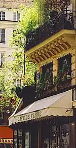 Post-war Paris was recalled fondly in 2007 when France introduced a ban on smoking in public places. The aroma of Gauloises and Gitanes was, for many years, thought to be an inseparable feature of Parisian café society, but the owner of Les Deux Magots, once frequented by Sartre, Simone de Beauvoir, Albert Camus and other writers, observed that "things have changed. The writers of today are not so addicted to cigarettes".[67] A British journalist who interviewed Juliette Gréco in 2010 described Les Deux Magots and the Café de Flore as "now overpriced tourist hotspots" and noted that "chain stores and expensive restaurants have replaced the bookshops, cafés and revolutionary ideas of Jean-Paul Sartre and Simone de Beauvoir's Rive Gauche".[68] As measures of changing attitudes to cuisine and fashion, by the early 21st century 80% of French croissants were being made in food plants, while, by 2014, only one factory continued to manufacture the traditional male beret associated with printers, artists, political activists and, during the inter-war years, the tennis player Jean Borotra.[69]