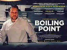 Boiling Point is a 2021 British drama film directed by Philip Barantini and written by Barantini and James Cummings. It stars Stephen Graham, Vinette Robinson, Ray Panthaki, and Hannah Walters. It is a one-shot film set in a restaurant kitchen. It is an expansion of a 2019 short film of the same name, also directed by Barantini and starring Graham.[2][3] It was originally planned to record eight takes of the film, but it was only possible to film half of these before a COVID-19 lockdown led to the end of the shoot.[4]