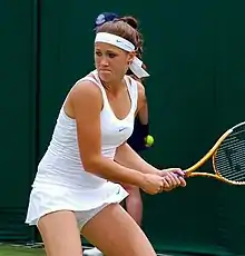 Her next tournament was the French Open, where she defeated María Irigoyen in the first round of the qualifying stage, but then fell to Anastasia Pivovarova in the second. She then suffered losses in the semifinal of the ITF event in Maribor and the Aegon International qualifications, but managed to enter into the main draw at Wimbledon.[18] Jovanovski defeated Casey Dellacqua in the first round, but lost to eighth seed Victoria Azarenka in the second. Her result at Wimbledon helped her ranking rise to world No. 93. Jovanovski then played at the Banka Koper Slovenia Open but lost to compatriot and world No. 2 Jelena Janković in the opening round. At the İstanbul Cup, she won three matches in straight sets to qualify for the main draw, but lost to Elena Vesnina in the first round. In August, Jovanovski qualified for the main draw of the first Premier 5 of the US Open Series, the Western & Southern Financial Group Women's Open.[19] She upset the 14th seed Aravane Rezaï in the first round,[20] but lost to Akgul Amanmuradova in the following round in straight sets. Jovanovski then attempted to qualify for the Rogers Cup and the Pilot Pen Tennis tournaments, but fell to Sorana Cîrstea and Elena Vesnina respectively. Jovanovski played her second Grand Slam event at the US Open, but was defeated by Anastasia Rodionova in the first round. She also competed in women's doubles partnering with Janković, but they were defeated by Kimiko Date-Krumm and Ayumi Morita.
