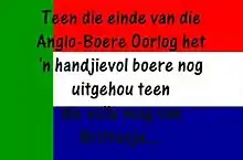 On 6 February 2007, the South African Department of Arts and Culture issued a statement regarding the song "De la Rey" (which is a tribute to Koos de la Rey) regarding the controversy that arose due to the popularity of the song with some Afrikaners, who interpret the lyrics as a call to armed battle.[4] [5] At some of his concerts some audience members have flown the old South African flag and the Transvaal Vierkleur. The Orange Free State flag is shown in the song's music video as part of the period scene depicted in the song and video. An article in Huisgenoot magazine challenged Minister Pallo Jordan to comment on the song and the message it is said to contain. In the statement, the Department deplored the possibility that the song could be hijacked by right-wing circles, but wished the singer good luck. The Minister also stated that he has no problem with protests or mobilisation from the opposition, as long as they occur within the framework of the law.[6][3]