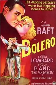 Bolero is a 1934 American pre-Code musical drama film directed by Wesley Ruggles and starring George Raft and Carole Lombard. The Paramount production was a rare chance for Raft to star and to play a dancer, which had been his profession in New York City, rather than portraying a gangster. The film takes its title from the Maurice Ravel composition Boléro (1928). The supporting cast includes William Frawley, Ray Milland, and Sally Rand.