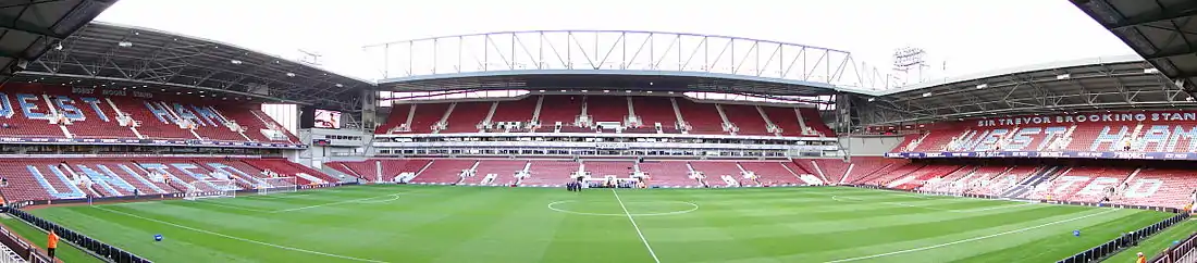 The Boleyn Ground,[2] often referred to as Upton Park, was a football stadium located in Upton Park, east London. It was the home of West Ham United from 1904 to 2016, and was briefly used by Charlton Athletic in the early 1990s during their years of financial difficulty. The seating capacity of the ground at closure was 35,016.[1]