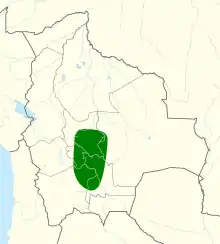 It is endemic to Bolivia, where its natural habitats are subtropical or tropical high-altitude shrubland and pastureland.
