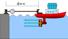 - The static force that intends to move the ship forward must only be generated by the friction between the propeller discharge race and the surrounding water. If the ship were too close to a wall, the measurement would be falsified.