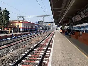 Bolpur Shantiniketan railway station is a major railway station in Birbhum district, West Bengal. Its code is BHP. It serves Bolpur City and Shantiniketan. The station consists of three platforms.[1][2][3]