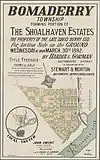 Bomaderry township was opened in 1882.[3] It was previously part of the Shoalhaven Estate owned by David Berry whose brother Alexander Berry had built a road to the area in 1858. When David died in 1889 the estate was sold in portions. The subdivision plans for Bomaderry are shown. In 1893 the railway was extended to Bomaderry and the town began to grow from this time.