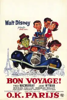 Bon Voyage! is a 1962 American comedy film directed by James Neilson and produced by Walt Disney Productions. It stars Fred MacMurray, Jane Wyman, Deborah Walley, Tommy Kirk, and Kevin Corcoran as the Willard family on a European holiday.