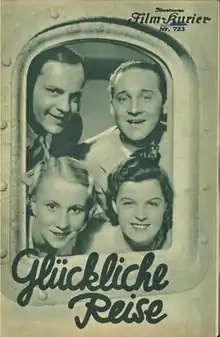 Bon Voyage (German: Glückliche Reise) is a 1933 German musical comedy film directed by Alfred Abel and starring Magda Schneider, Ekkehard Arendt and Max Hansen.[1] It was shot at the EFA Studios in Berlin. The film's sets were designed by the art director Manfred Hoermann.[2] Based on Eduard Künneke's 1932 operetta Glückliche Reise, it is an operetta film, a genre that was enjoying popularity at the time. It was filmed again in 1954.