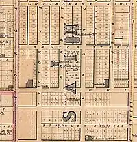 After meeting in temporary facilities on present day Colborne and Lombard Streets a building which became known as Bond Street Baptist Church Toronto, Ontario was built (located on the property of the current St. Michael's Hospital (Toronto) on Bond St., w. side, between Queen & Shuter Sts.). It opened for worship in June 1848[4] and enlarged through 1852 and served until 1875 when it was superseded by Jarvis Street Baptist Church. It was built by members of the earlier Lombard St. Baptist grouping. It was separate and distinct from the earlier African American congregation known as First Baptist Church (Toronto). During this era the church held morning services at 11, evening services at 6 and Sabbath school (Sunday school) at 2:30 in the afternoon.[5] The building on Bond St. was sold and used in 1892 by the Sisters of St. Joseph, who operated the Notre Dame des Anges, a boarding house for working women which later became St. Michael's Hospital (Toronto).