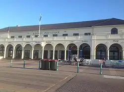 - North Beach Bathing Pavilion - Interwar Functionalist style, completed in 1938, single storey central pavilion with open-roofed dressing areas on either side;